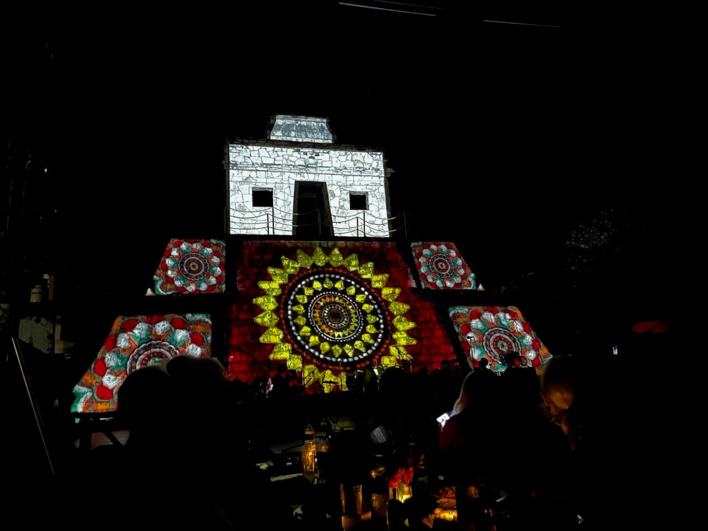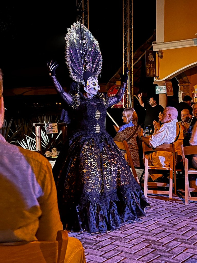 I managed to make the last bus to the venue for the AzAmazing evening which was across the street from the port. The performance was a celebration of Mexico’s history from before the written word to modern-day. The vibrant group of performers included dancers and musicians of pre-Hispanic music, mariachis, a professional orchestra and “bird men.” The bird men descend to the ground head first while swinging around a pole. This symbolizes their petition to the gods for good harvests and health for the community. Thank goodness we were permitted to walk home from the Plaza Maya.