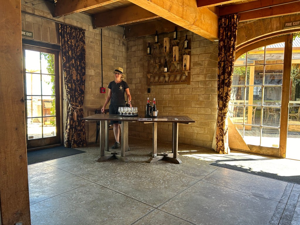 Goldie Estate Winery was gifted to The University of Auckland by the original owners. 30,000 bottles a year are produced and most are sold at the winery. Joe and I bought a bottle of the Syrah which will not be coming back to the States!