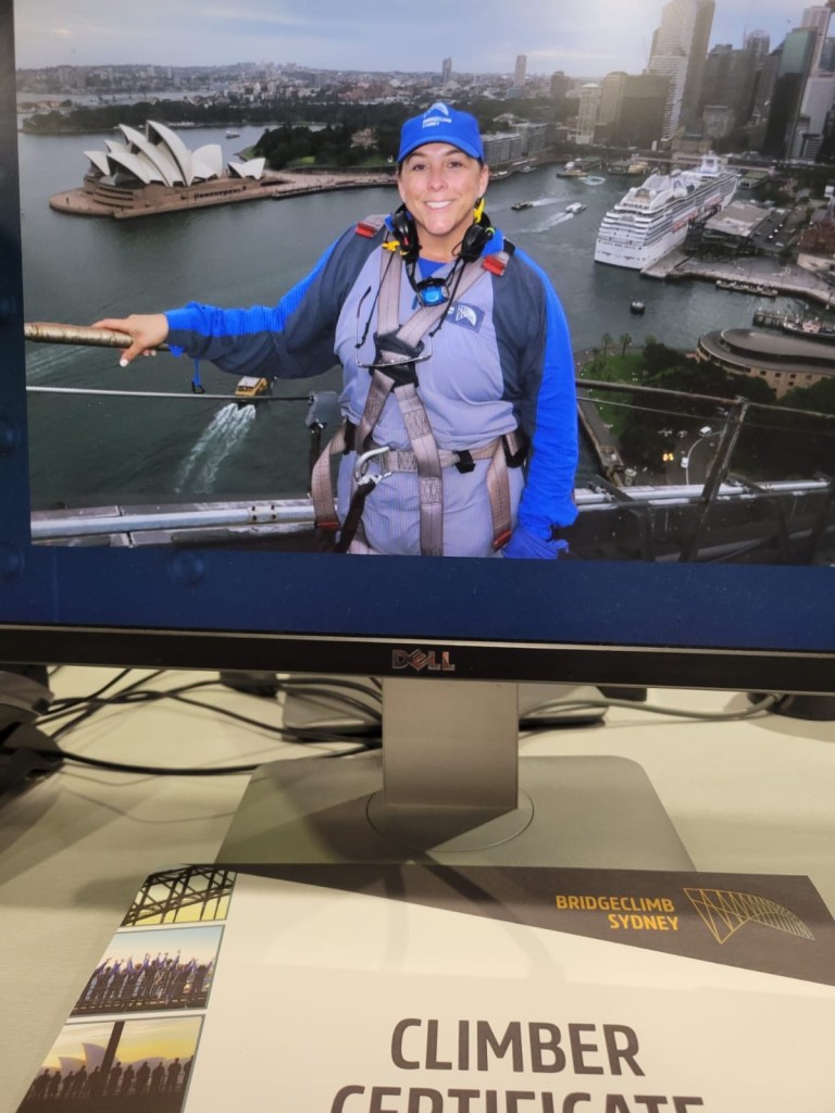While we ate her friend Sarah did the Sydney Bridge climb. An impressive feat.