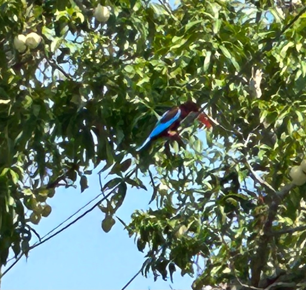Our “ride” for the day. A Kettuvallam. Made by hand from the wood of coconut trees, Areca nut trees, bamboo and other natural gifts. These can be rented for a vacation. A glimpse of life around the waterA taxi. Notice the political poster. Elections were approaching. There are 1700+ political parties in IndiaA resort along the backwatersA kingfisher There is commerce here, represented by this photo.
