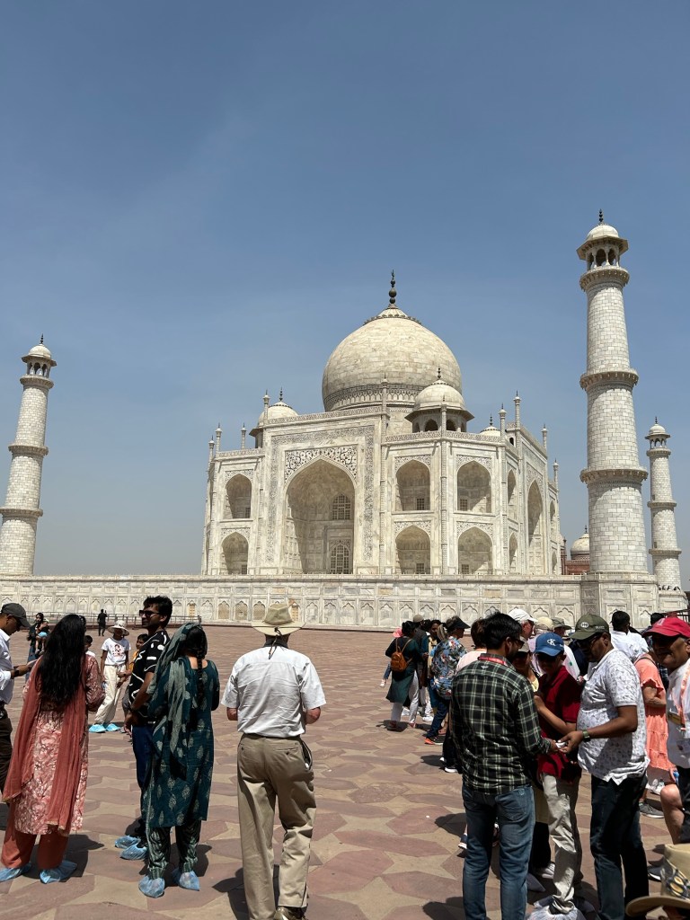 View from the east side. Notice the shoe coverings (necessary to enter and view the tombs). The Shah Jahan certainly outdid himself on this monument to his favorite wife.