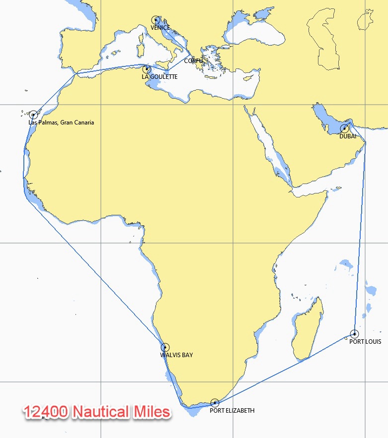 Left Dubai yesterday at 16:00. An hour later than scheduled because of paperwork. Captain Carl is back with us. He keeps us informed. Our route through the Strait of Hormuz will actually be through some islands off the coast of Oman.