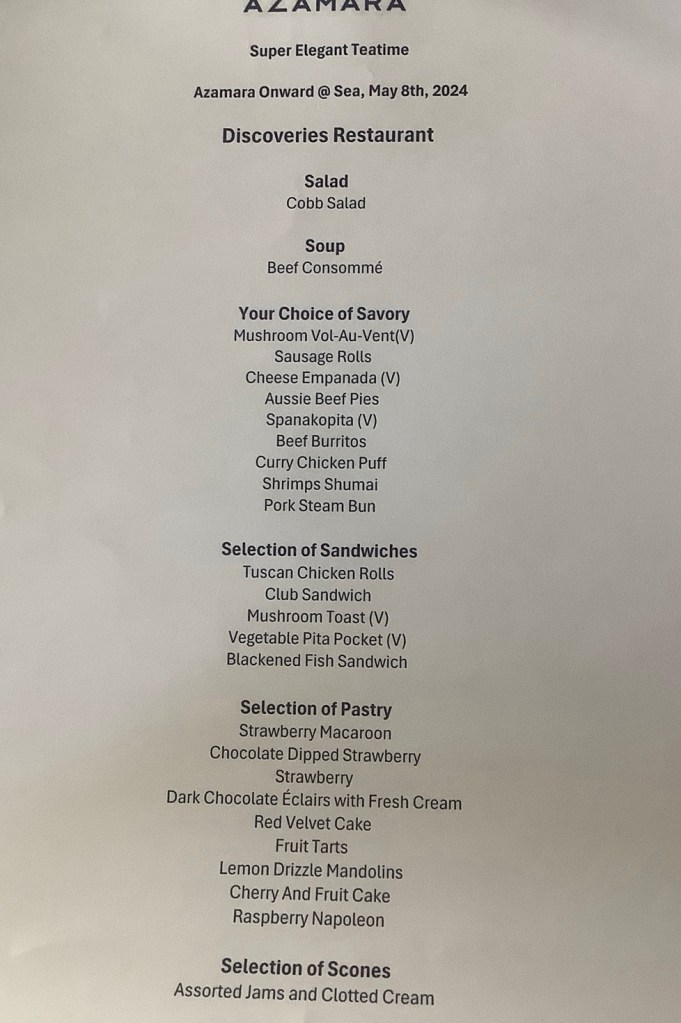 Lunch Wednesday was Super Elegant Teatime. Kudos to the F&B staff for keeping the passengers guessing.