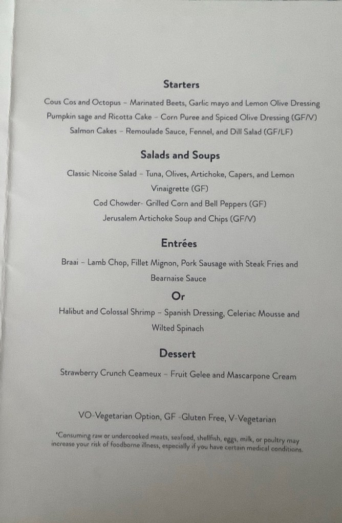 Dinner in Discoveries (main dining room) was followed by a fabulous evening performance by Amanda Poulson. Amanda formerly was a cruise director on Azamara. She has left the company. This performance was her debut as a guest performer.