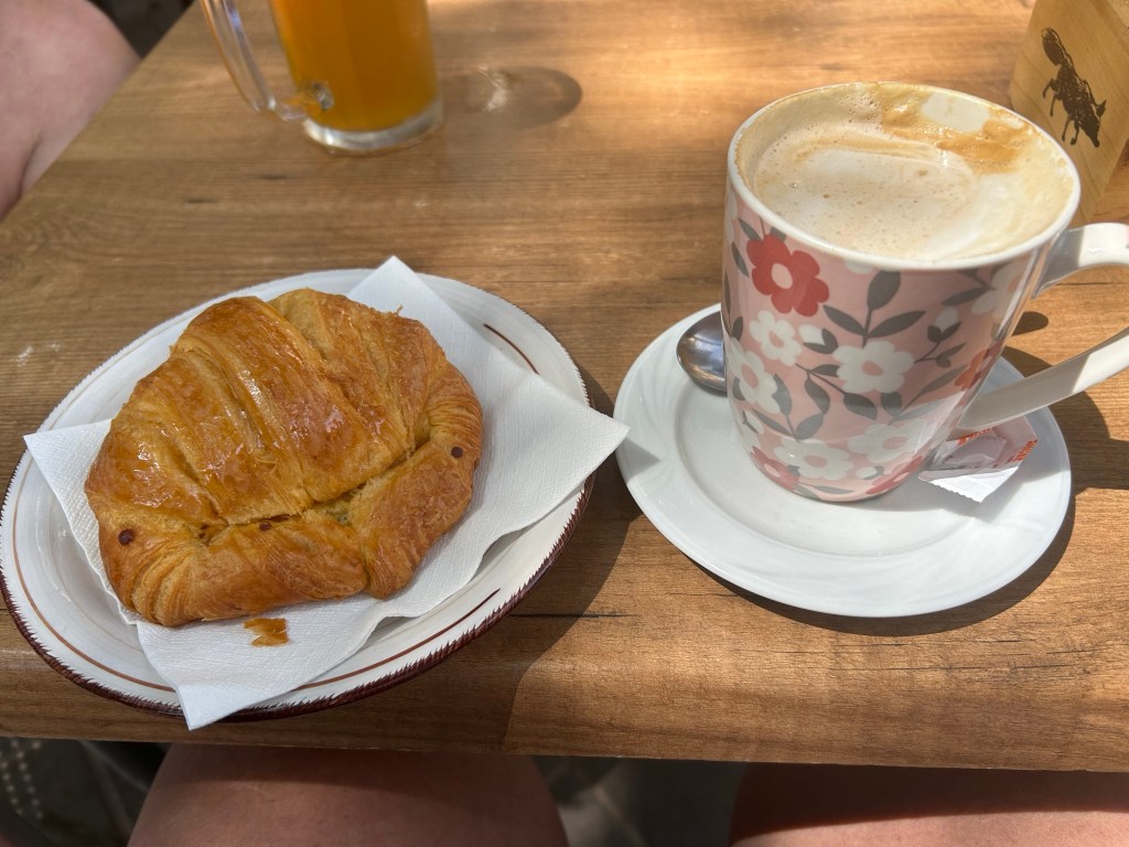 Joe and I ventured into town on the shuttle bus. We didn’t go far. Just into old town for a croissant, cafe con leche and a beer along with people watching.