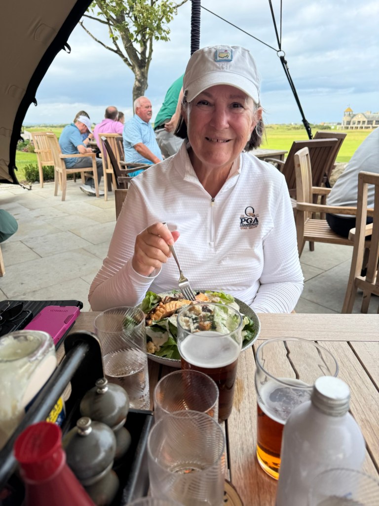 Jay very kindly walked my clubs to the car and then we walked to the Jigger Inn and met Carrie and Joe. An iconic 19th hole experience. A pint and a bite to eat.