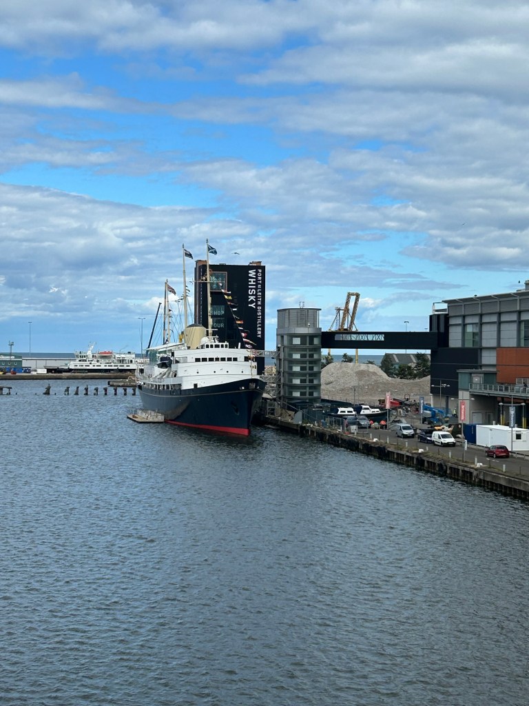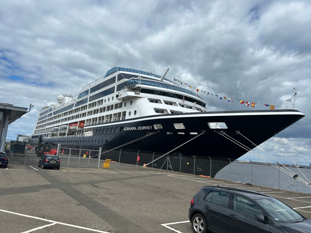 Departure from St. Andrews was about 9:30 AM, 15 minutes later than planned. It was 90+ minutes to the port in Leith. A short wait in the queue to get golf bags and luggage unloaded for processing on to the ship. Joe stayed at the port while Marianne returned the car to the airport rental car center. Waze estimated at 35 minute trip but gas was required before returning the vehicle so the entire trip to the airport rental car return was over an hour. Marianne chose to stop at a Tesco Fuel station that offered a car wash. Car wash? The explanation for that is very simple. On the way to St. Andrews, Marianne found more of the left gutter than the middle of the road. Hence the left tires and wheel covers were a bit muddy. Also the gulls had had quite the party on the car resulting in a good bit of white stuff. And a good bath might help when the turn-in inspection on the rental car was performed. The thinking being dirt would result in a closer examination of the vehicle and no dirt might help said inspector not look more closely. £6 seemed a small price to pay to avoid a closer inspection.