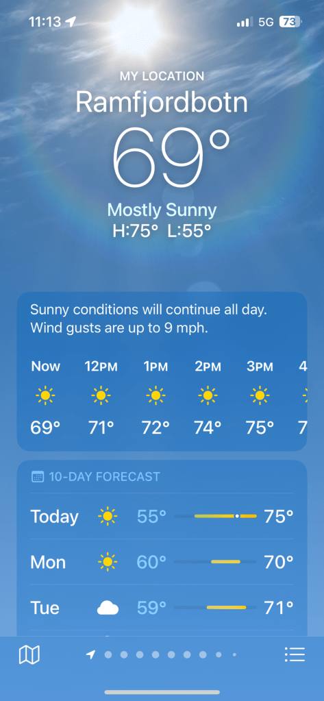 The vistas were far better than the golf. The course is only open a few months a year. In the winter it is a dog sled venue for tourists. Again the golf course was a bit tight with the ground cover just outside the “first cut.”