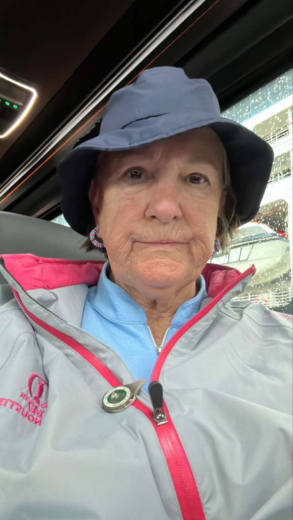 Back on the ship, four of us headed for the Thalassotherapy pool on Deck 9 to warm up. The thinking was there was more protection from wind and rain as opposed to the hot tubs on the pool deck. Not necessarily the case, but a good warm-up.
