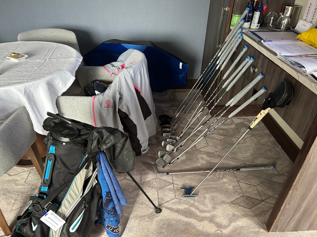 Golf is today’s activity. The host is Bodø Golfpark. But the weather prediction is not particularly conducive to golf. Joe chose not to participate along with seven others. That was good news to Marianne as it was her day to walk with a trolley. The absentees meant that there were enough buggies for the remaining twelve players.