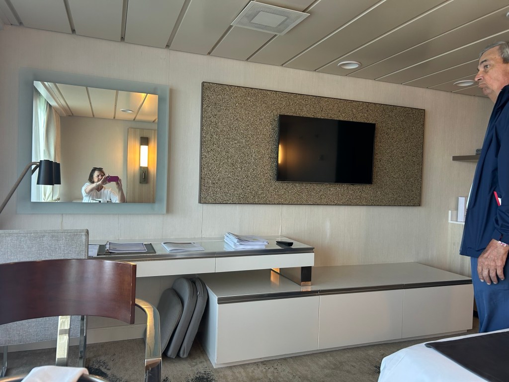 Joe and Marianne checked out the Club Continent Suite on the ship with an eye toward a future booking.