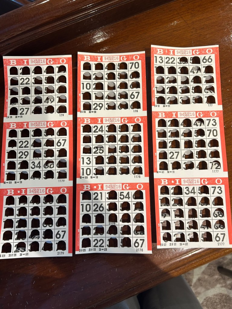 Marianne attended the Expo (a fair of sorts—each of the departments has a display of their wares) and received a ticket for a drawing at 2:00. Bingo was at 2:00 also. And since there is an abundance of Onboard Credit Marianne played Bingo with house money. The only game was cover the card. If covered within 52 balls, a free cruise is the prize.