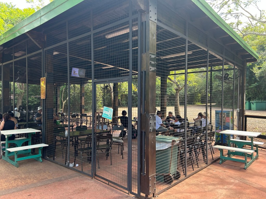 After the upper trail we took the train back to the middle stop, bought some sports drinks and rested. There are cages for people to consume food so as not to be disturbed by the wildlife.
