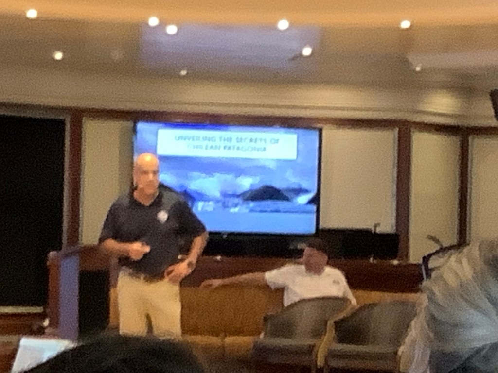 Since Punta Arenas we have had a Chilean Pilot on board to guide the ship through the fjords. We were fortunate that he agreed to do an enrichment lecture on the history of exploration in Chile.